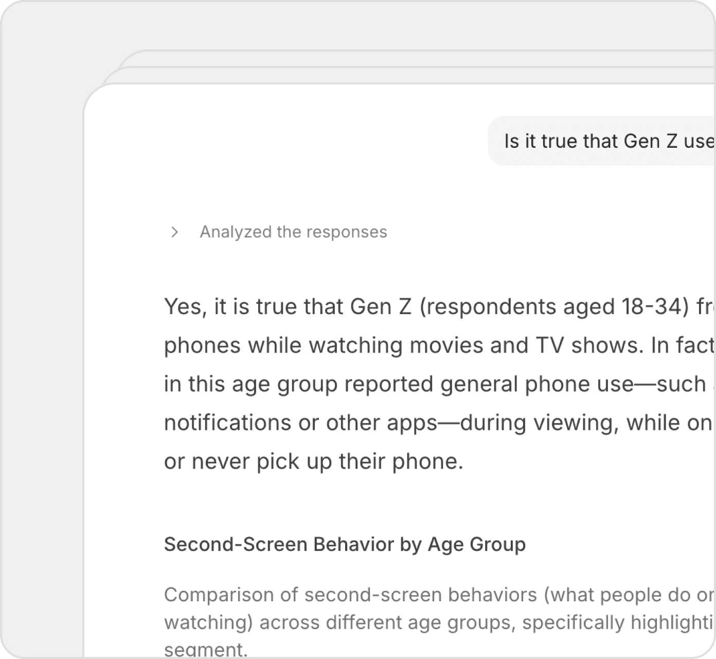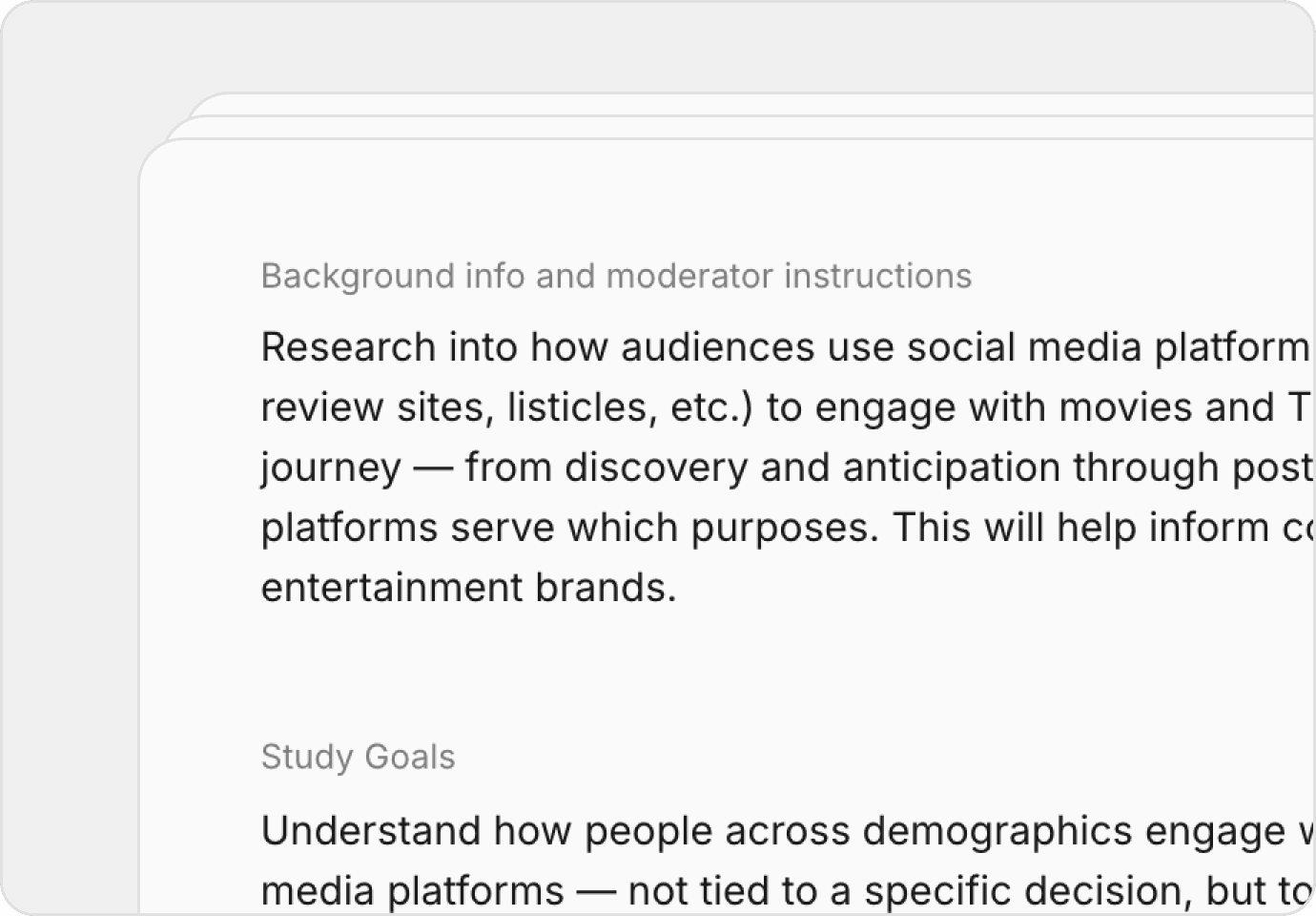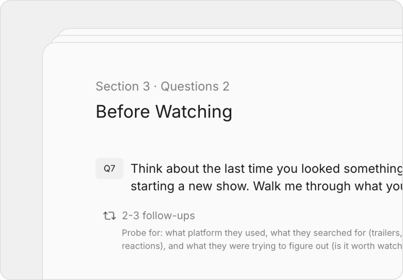 Built on qualitative best practices, with a neutral tone and a respondent experience that feels considered and natural.