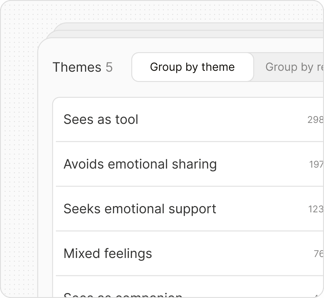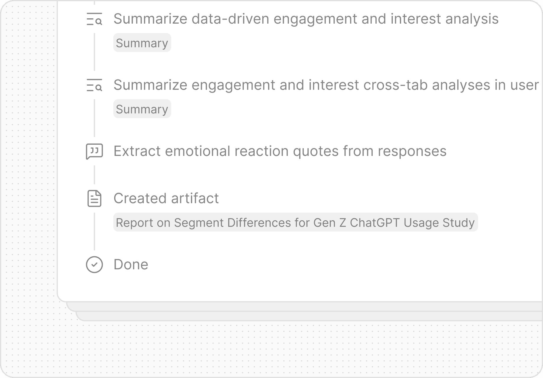 Every number and chart links back to the underlying responses, so you can verify before you act.