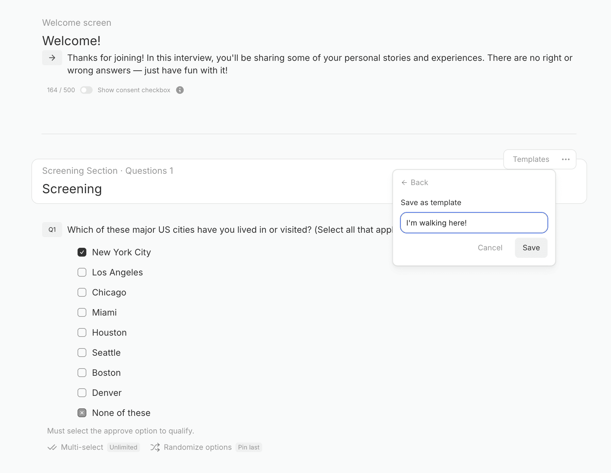 Use it to add required screening questions, enforce your brand's tone of voice, or include standard demographic questions across all discussion guides. No more copy-pasting boilerplate or reminding team members about requirements. Your best practices become the default.